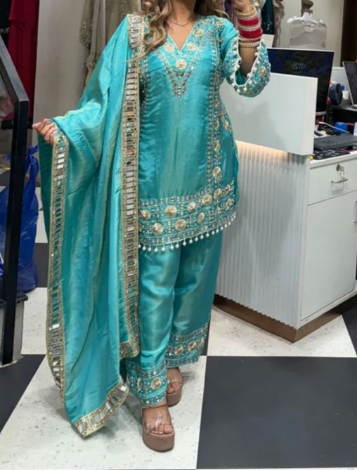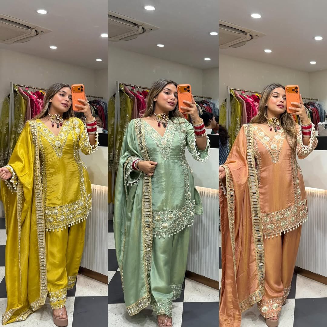 premium shimmer tissue fabric, this designer suit set
